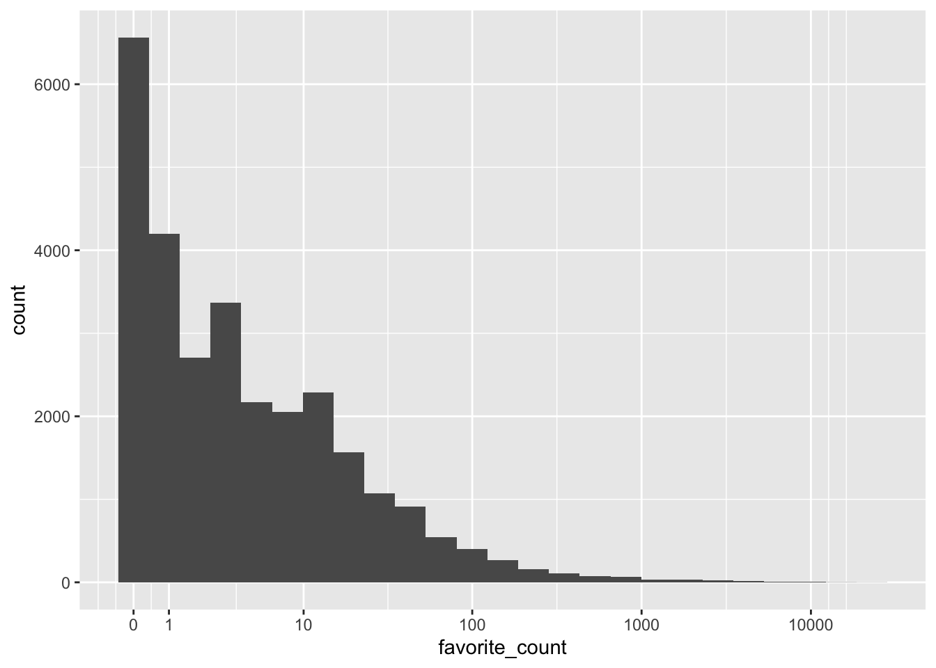 ggplot(tweets, aes(x = favorite_count)) +