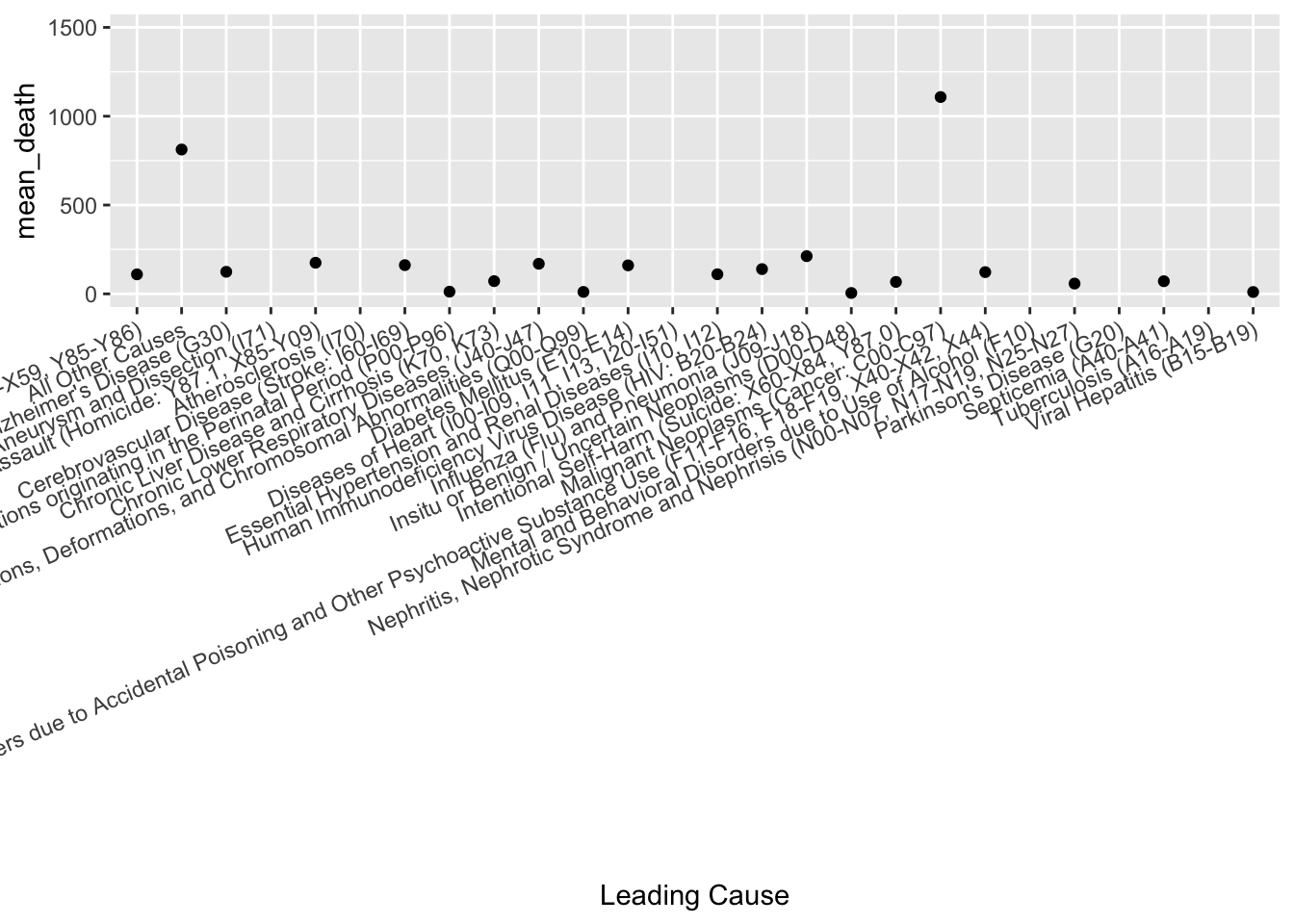 ggplot(aes(x=`Leading Cause`, y=mean_death)) +