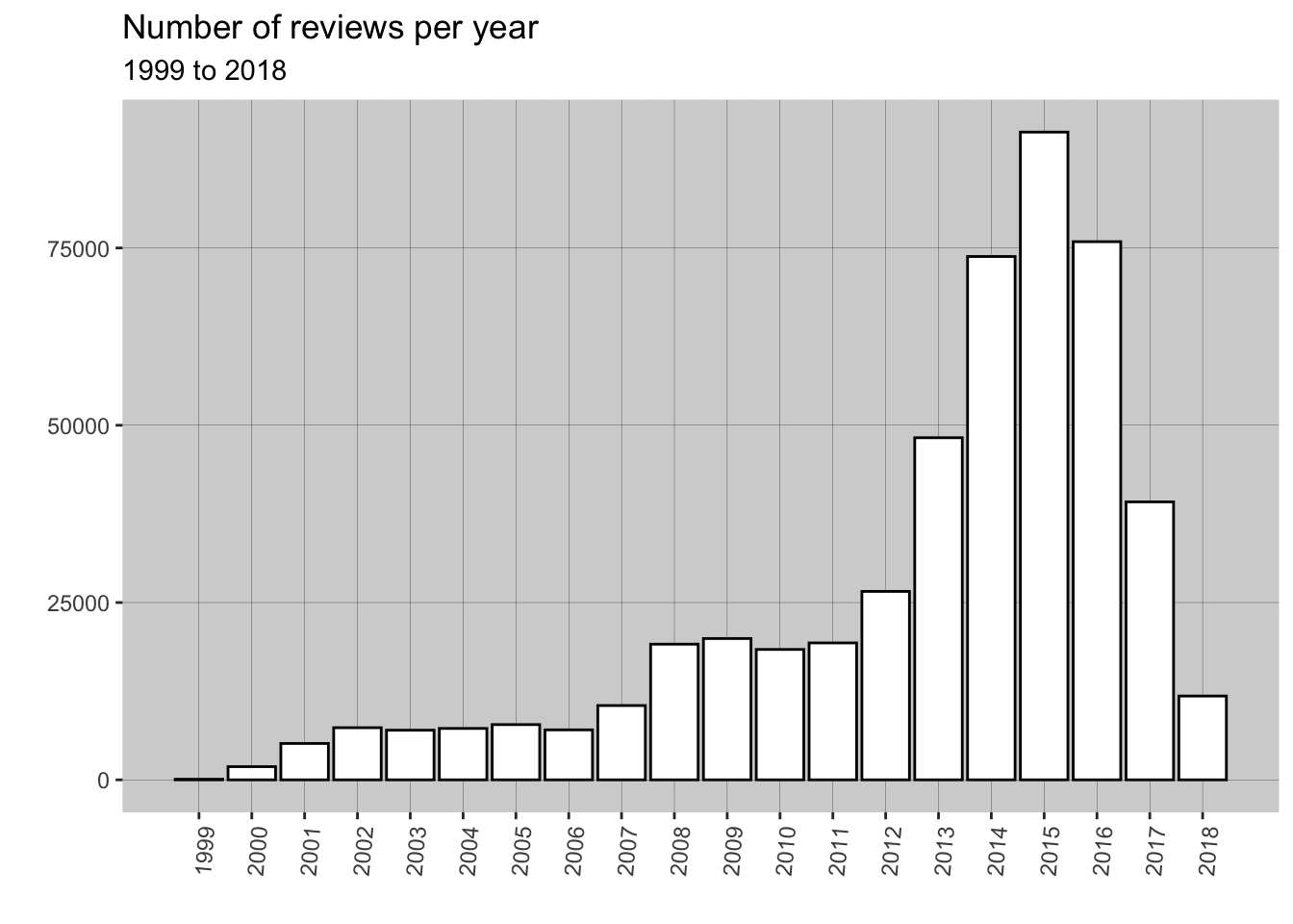 #ggplot(reviews_by_year, aes(x=year, y=counts))